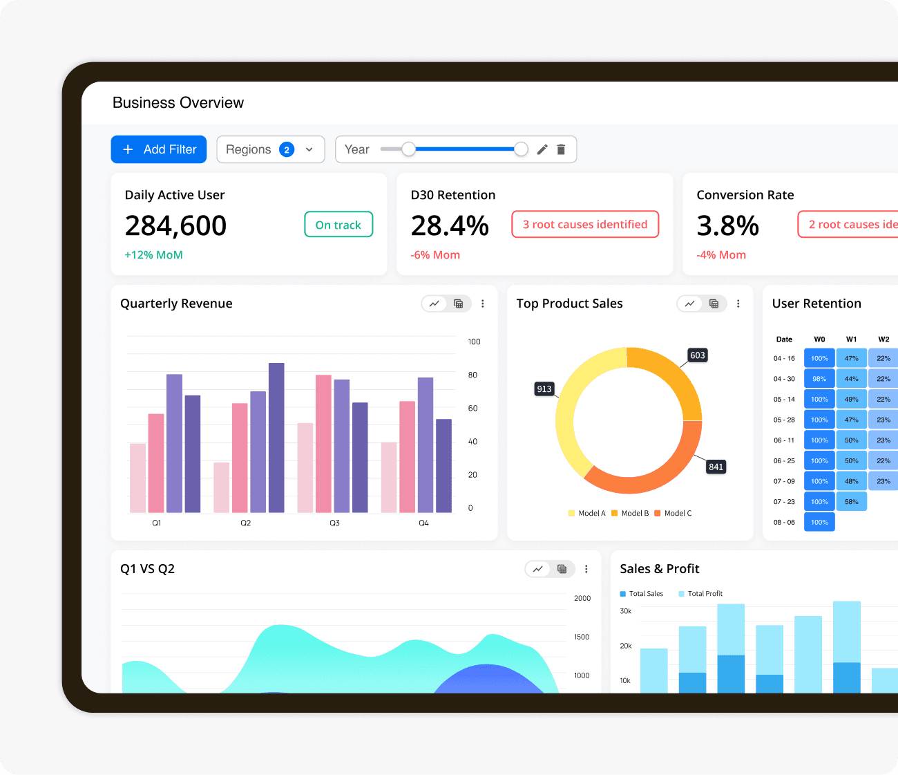 Athenic tracks your business metrics so you always know what's changing and why, before problems arise