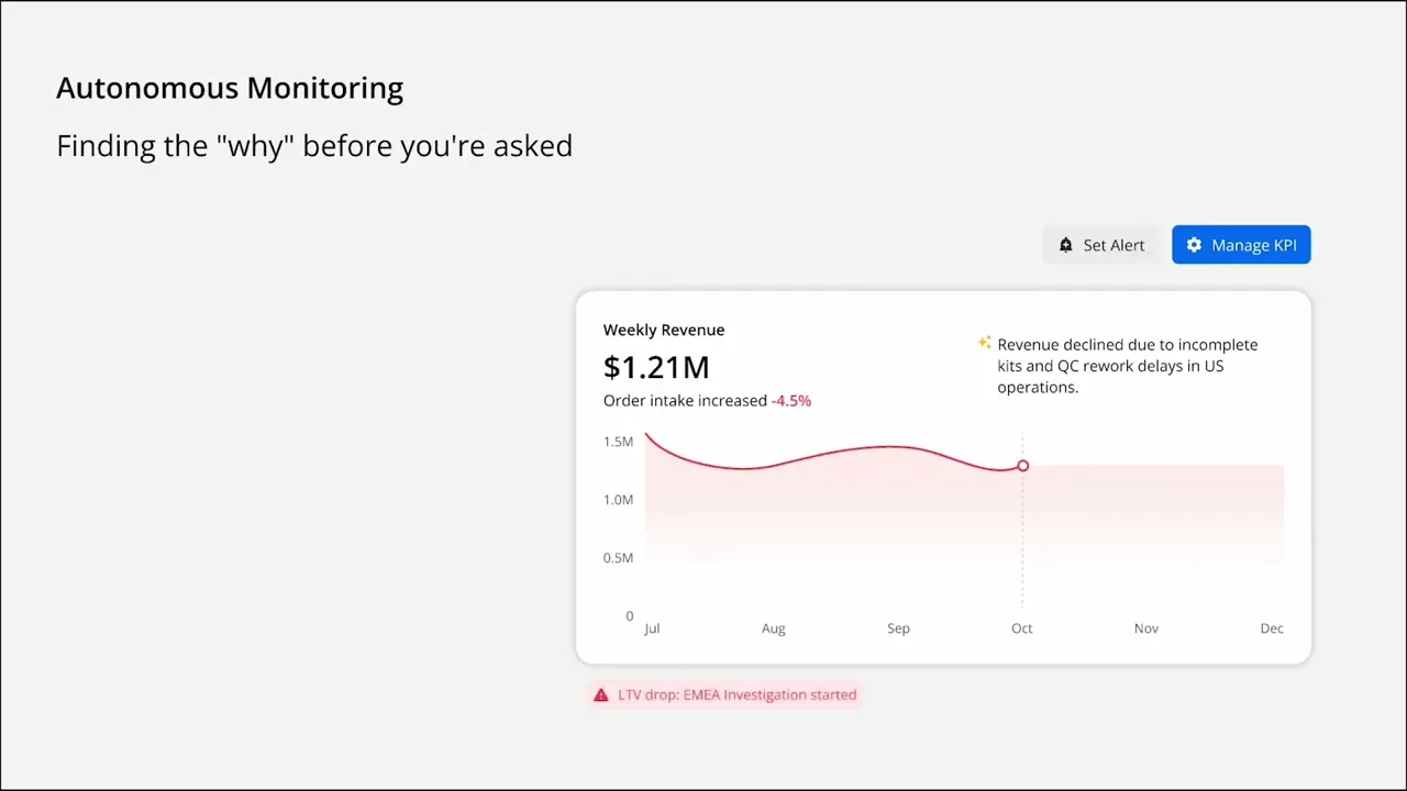Discover data insights in seconds just by asking questions. Create beautiful charts and visualizations just by talking to the AI. Ask follow-up questions to uncover the true driving factors.