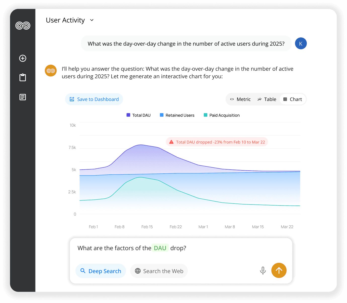 Chat • Deep Research • Dashboards
